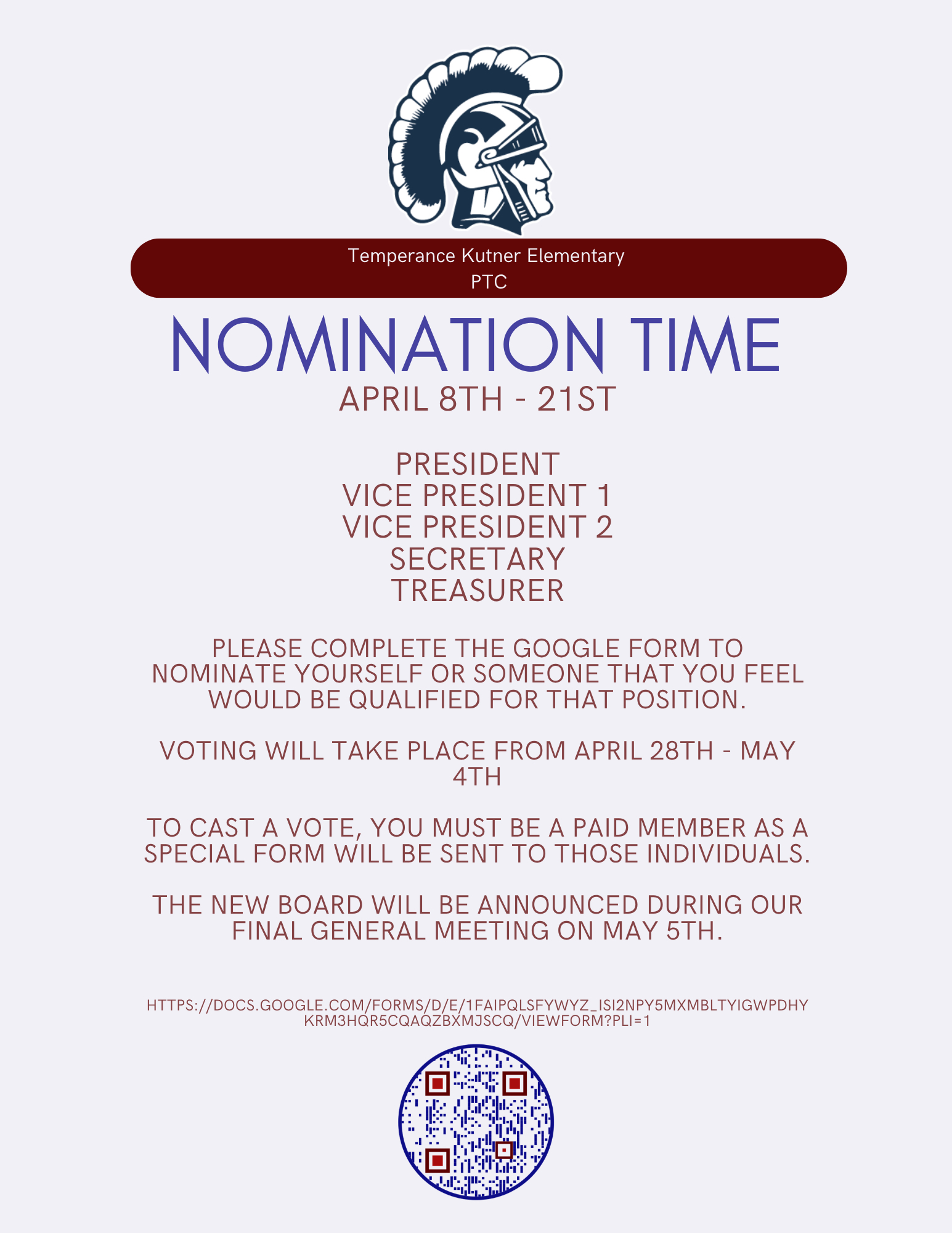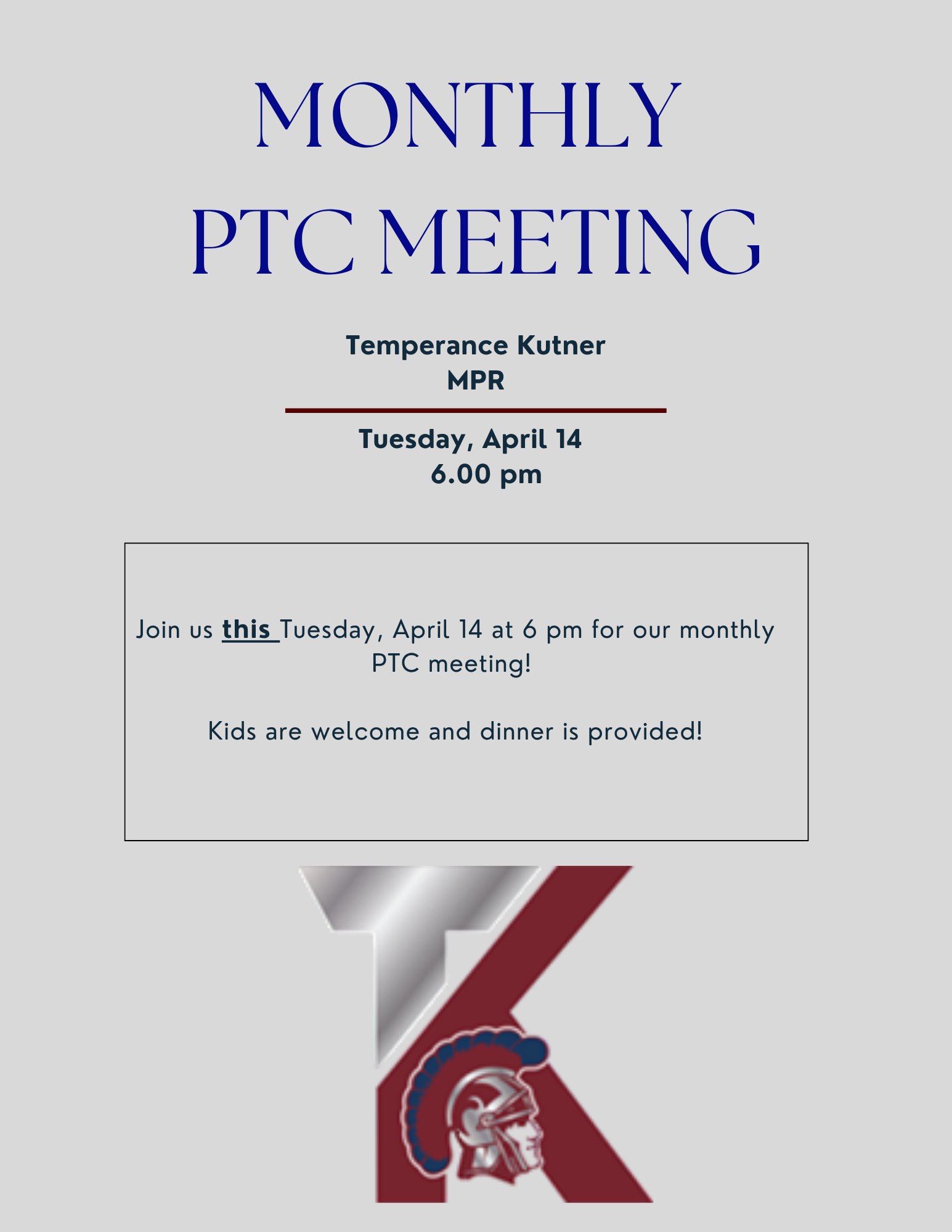 Thinking about nominating yourself or someone for our PTC? Join us at our meeting tomorrow night at 6:00PM for more information! All are welcome, and dinner is served!