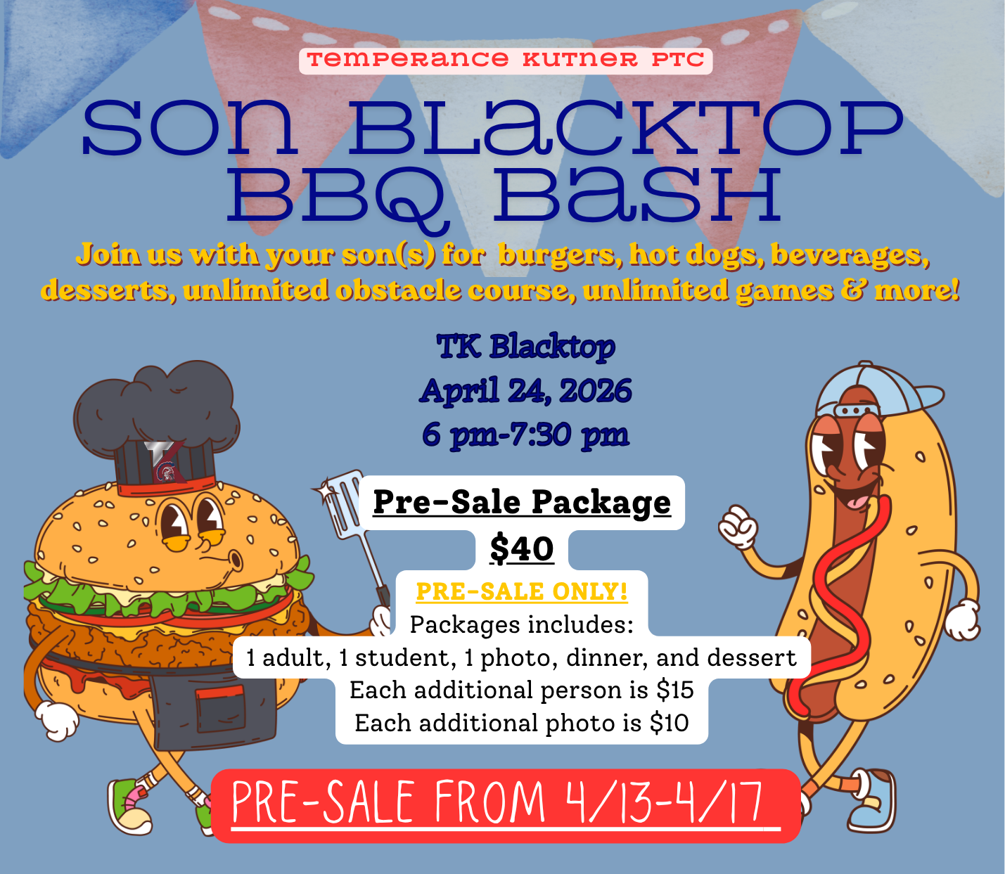 Our BLACKTOP BBQ BASH SON DANCE pre-sale starts today! Please check your child's backpack for the pre-sale flyer. We hope to see you there!